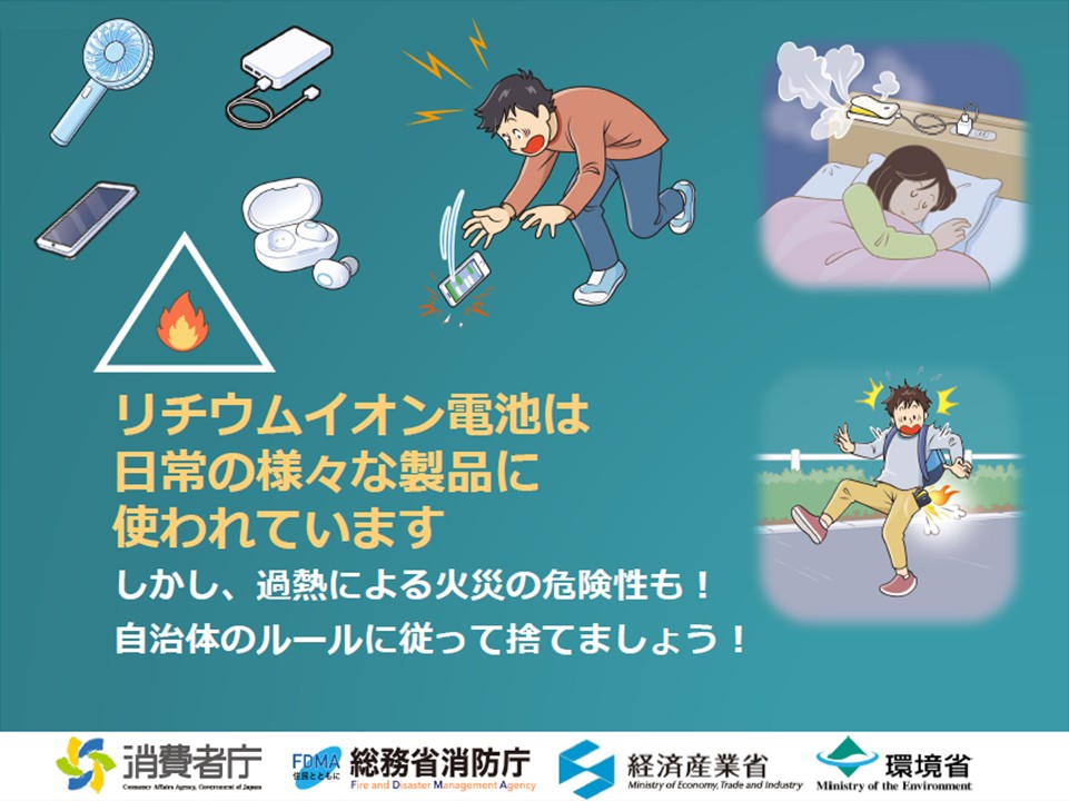 そこで衣浦東部広域連合消防局では、環境省が実施する「リチウムイオン電池による火災防止強化キャンペーン」および「リチウムイオン電池による火災防止月間」にあわせて、皆さまへ注意を呼びかけています。
