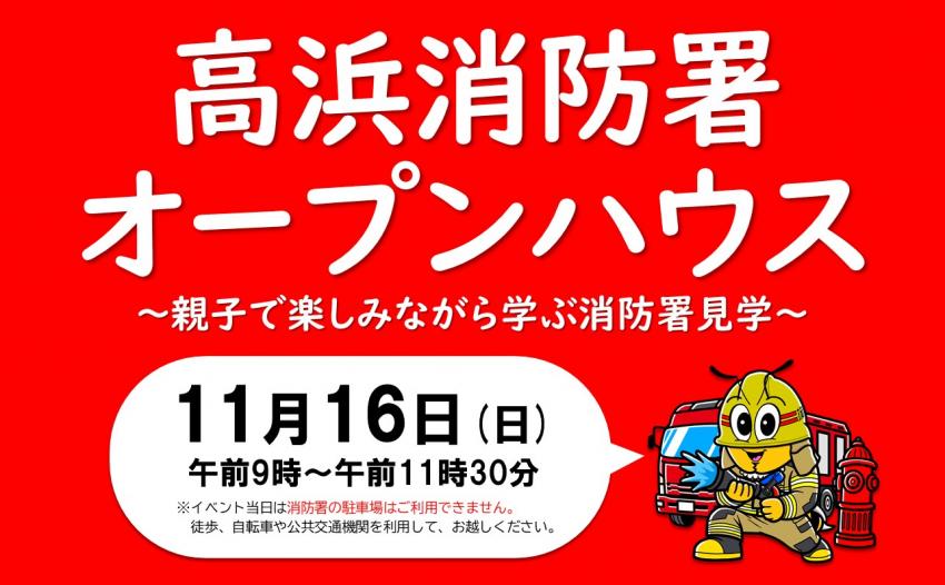 高浜消防署トップページ > お知らせ一覧 > [開催予告]高浜消防署オープンハウス~親子で楽しみながら学ぶ消防署見学~【高浜消防署】