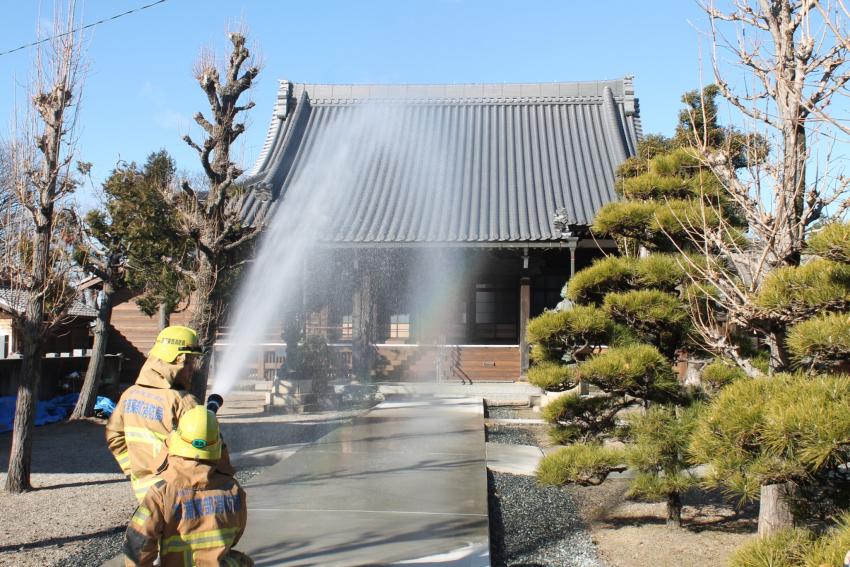 今回、高浜消防署では、「第72回文化財防火デー」の一環として、令和8年1月22日(木曜日)に、高浜市青木町にある恩任寺(おんにんじ)において、消防訓練を実施しました。
