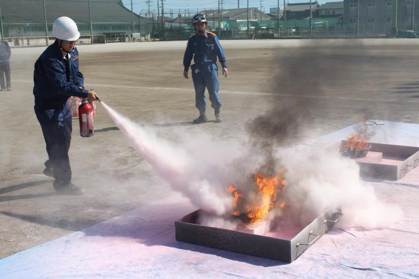 令和7年9月26日(金曜日)、高浜市碧海町の碧海グランドAコートにおいて、高浜消防署が事務局を務める高浜市危険物安全協会による「第2回消火器取扱指導会」を開催しました。